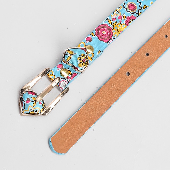 Ремень детский «Цветочек», пряжка и хомут золото, ширина - 1,8 см, цвет голубой