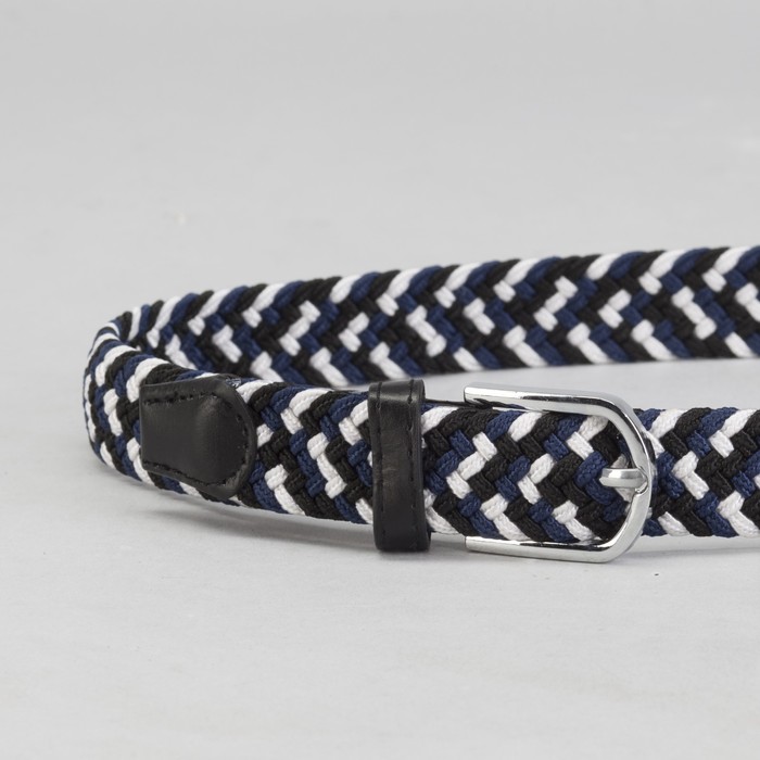 Ремень детский «Плетение», резинка, пряжка металл, ширина - 2,5 см, цвет чёрный/синий/белый