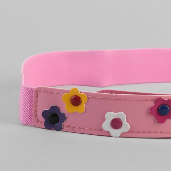 Ремень детский "Ромашки", резинка, пряжка металл, цвет розовый