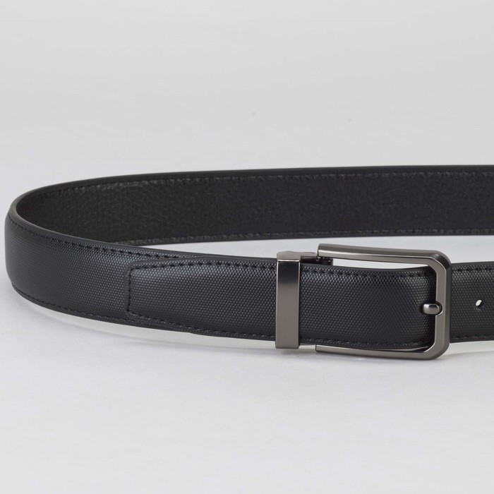 Ремень мужской, 2 строчки, пряжка тёмный металл, ширина - 3 см, цвет чёрный