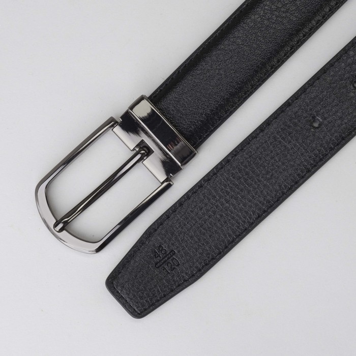 Ремень мужской, 2 строчки, пряжка тёмный металл, ширина - 3 см, цвет чёрный