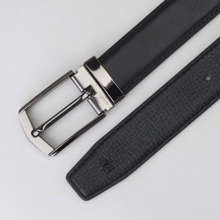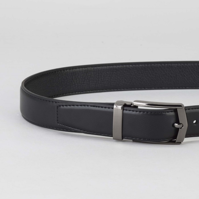 Ремень мужской, 2 строчки, пряжка тёмный металл, ширина - 3 см, цвет чёрный
