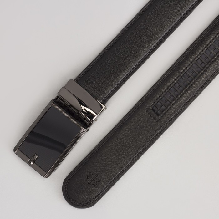 Ремень мужской, 2 строчки, пряжка зажим тёмный металл, ширина - 3,5 см, цвет чёрный