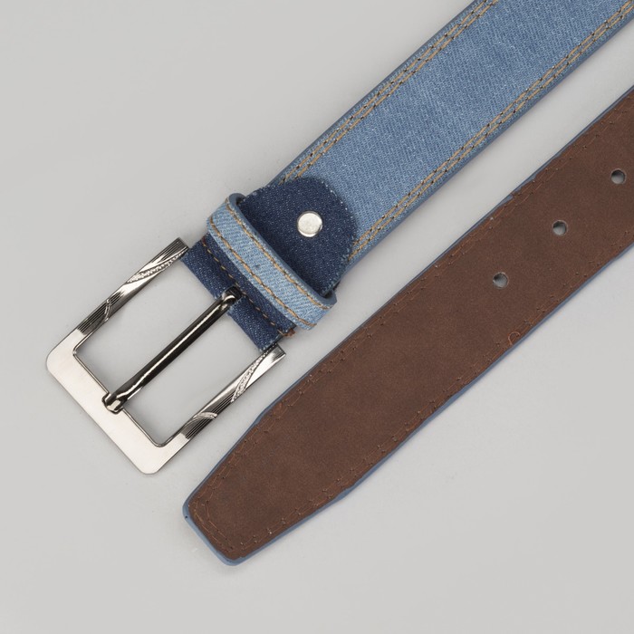 Ремень мужской, джинс, пряжка металл, ширина - 4,5 см, цвет голубой