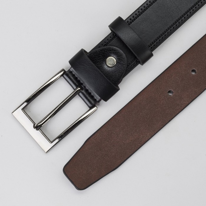 Ремень мужской, гладкий, 2 строчки, пряжка металл, ширина - 3 см, цвет чёрный