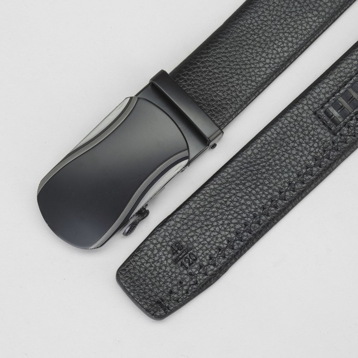 Ремень мужской, гладкий, пряжка - автомат матовый металл, ширина - 3,8 см, цвет чёрный