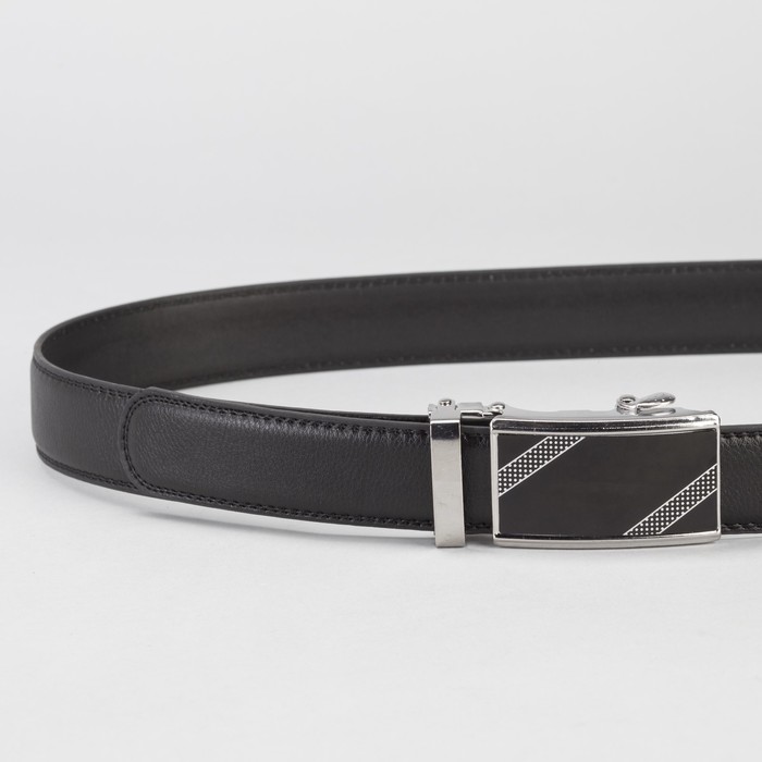 Ремень мужской, гладкий, пряжка-автомат металл, ширина - 3,5 см, цвет чёрный