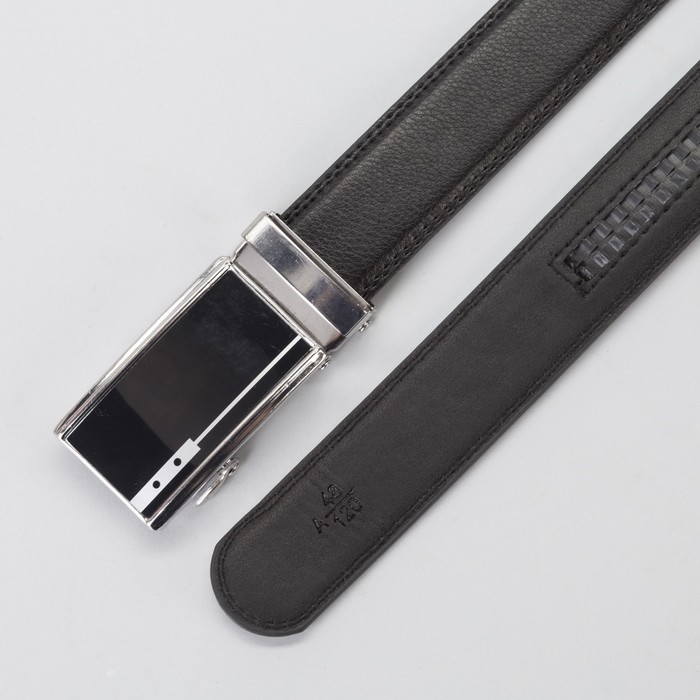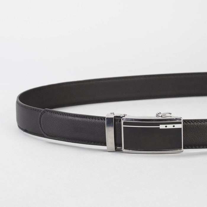 Ремень мужской, гладкий, пряжка-автомат металл, ширина - 3,5 см, цвет чёрный