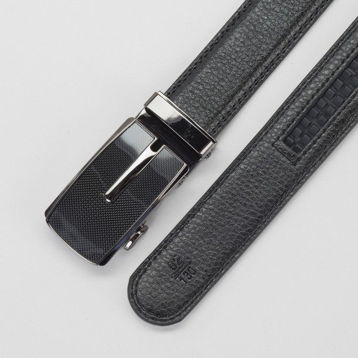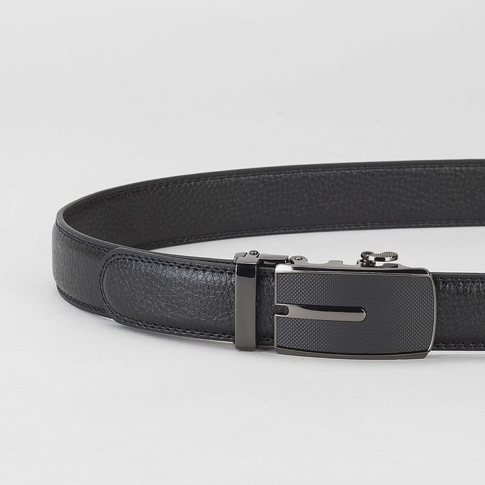 Ремень мужской, гладкий, пряжка - автомат тёмный металл, ширина - 3 см, цвет чёрный