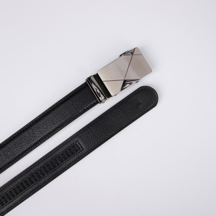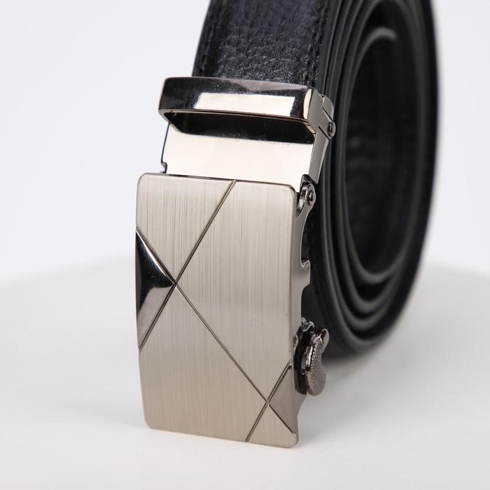 Ремень мужской, гладкий, пряжка - автомат тёмный металл, ширина - 3 см, цвет чёрный