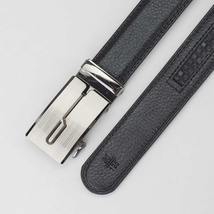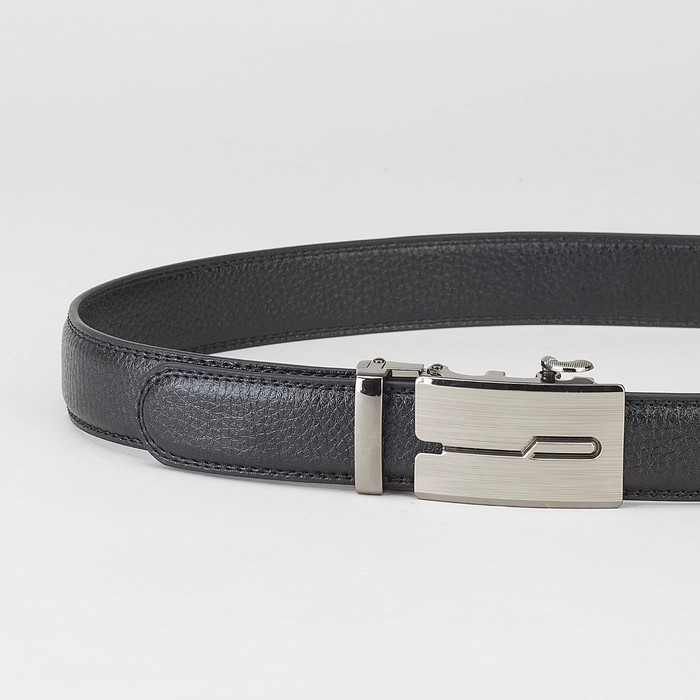 Ремень мужской, гладкий, пряжка - автомат тёмный металл, ширина - 3 см, цвет чёрный