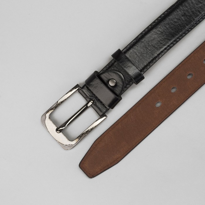 Ремень мужской гладкий, пряжка под металл, ширина - 4см, чёрный — выбор стильных людей. Вещь изготовлена из качественных и безопасных материалов, а над дизайном работала команда настоящих профессионалов.
