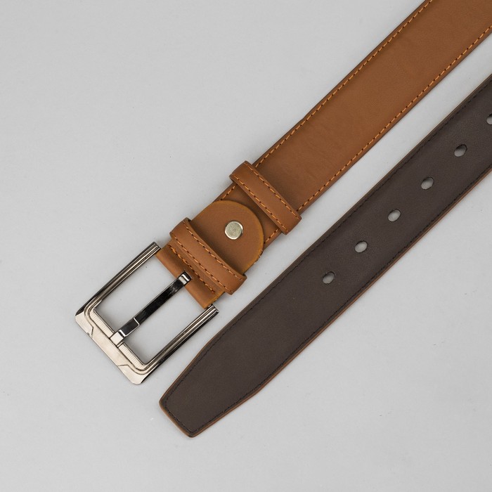 Ремень мужской гладкий, пряжка под металл, ширина - 4см, коричневый