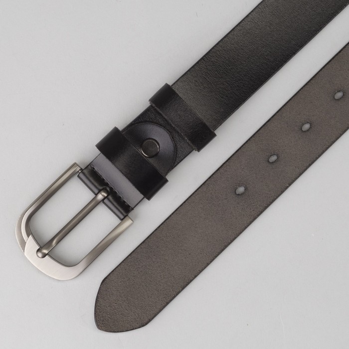 Ремень мужской, гладкий, пряжка тёмный металл, цвет чёрный