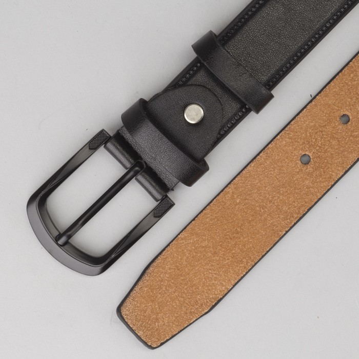 Ремень мужской, гладкий, пряжка тёмный металл, цвет чёрный