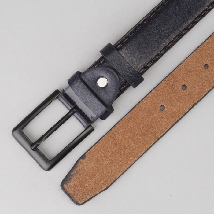 Ремень мужской, гладкий, пряжка тёмный металл, цвет синий