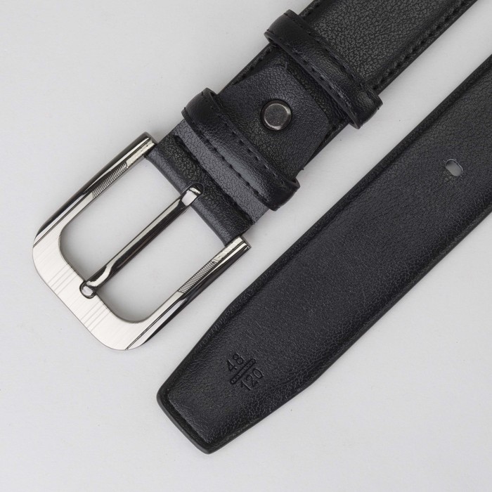 Ремень мужской, гладкий, пряжка тёмный металл, ширина - 3,5 см, цвет чёрный