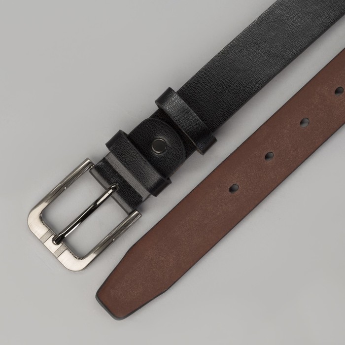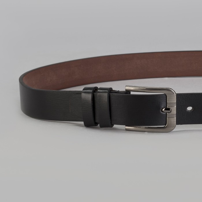 Ремень мужской, гладкий, пряжка тёмный металл, ширина - 3,5 см, цвет чёрный
