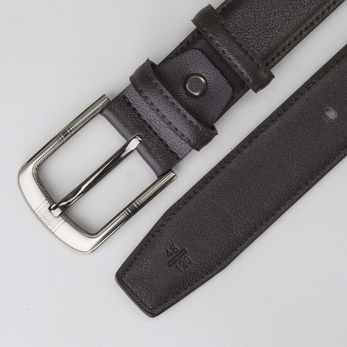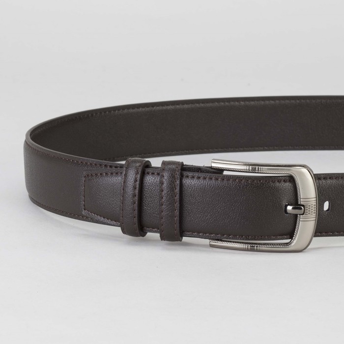 Ремень мужской, гладкий, пряжка тёмный металл, ширина - 3,5 см, цвет коричневый