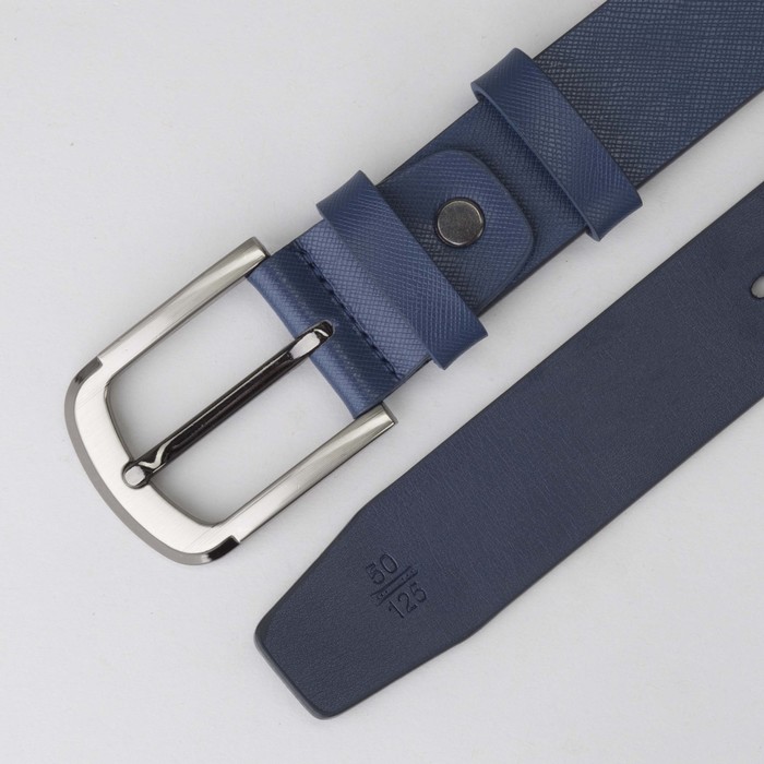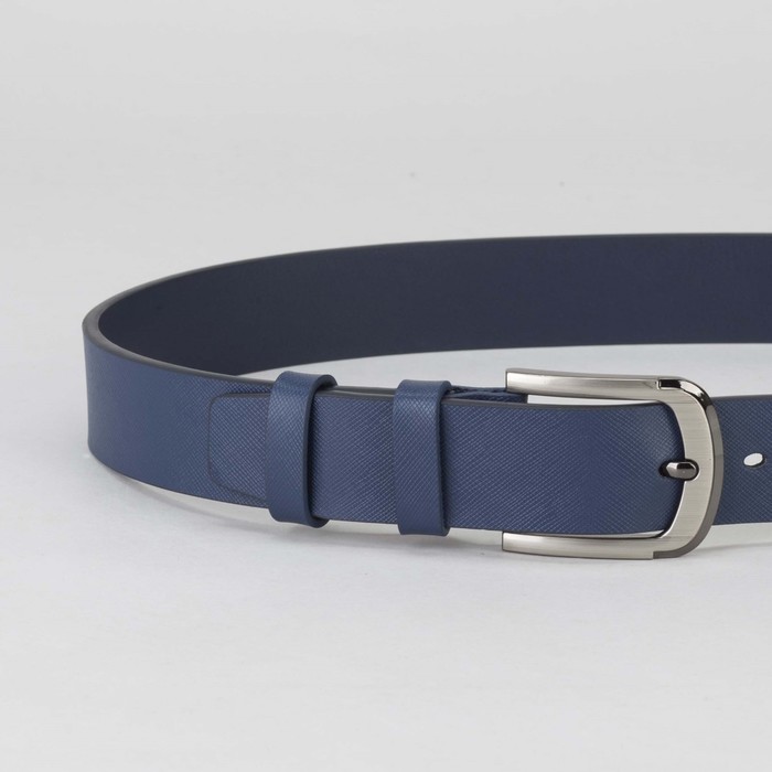 Ремень мужской, гладкий, пряжка тёмный металл, ширина - 3 см, цвет синий