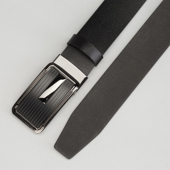 Ремень мужской, гладкий, пряжка зажим микс, ширина - 4 см, цвет чёрный