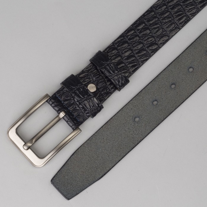 Ремень мужской, кайман, пряжка тёмный металл, цвет синий