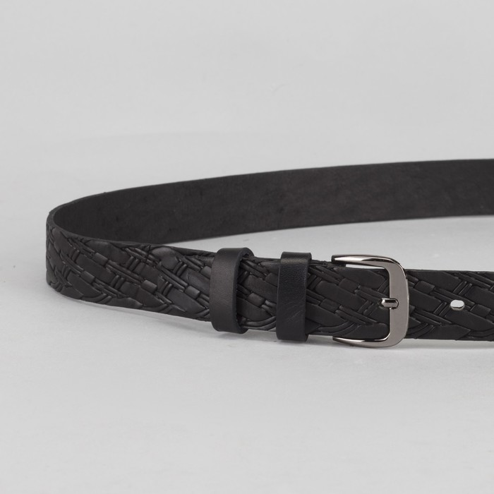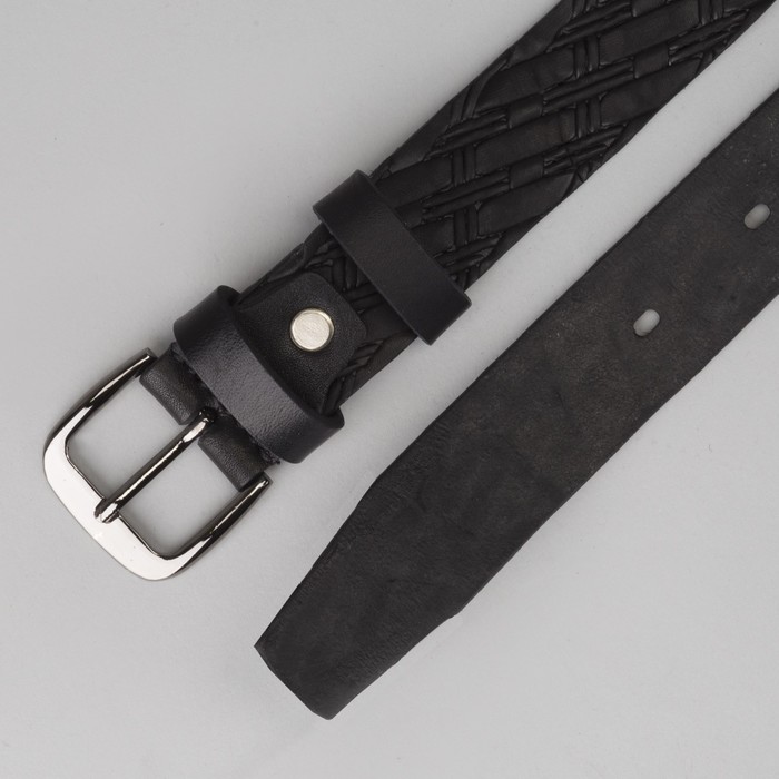 Ремень мужской, плетение, пряжка тёмный металл, цвет чёрный