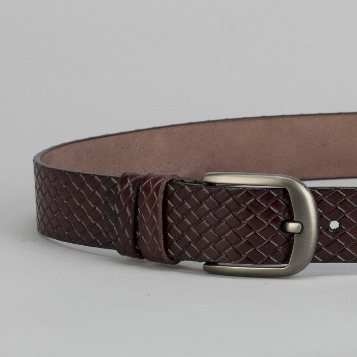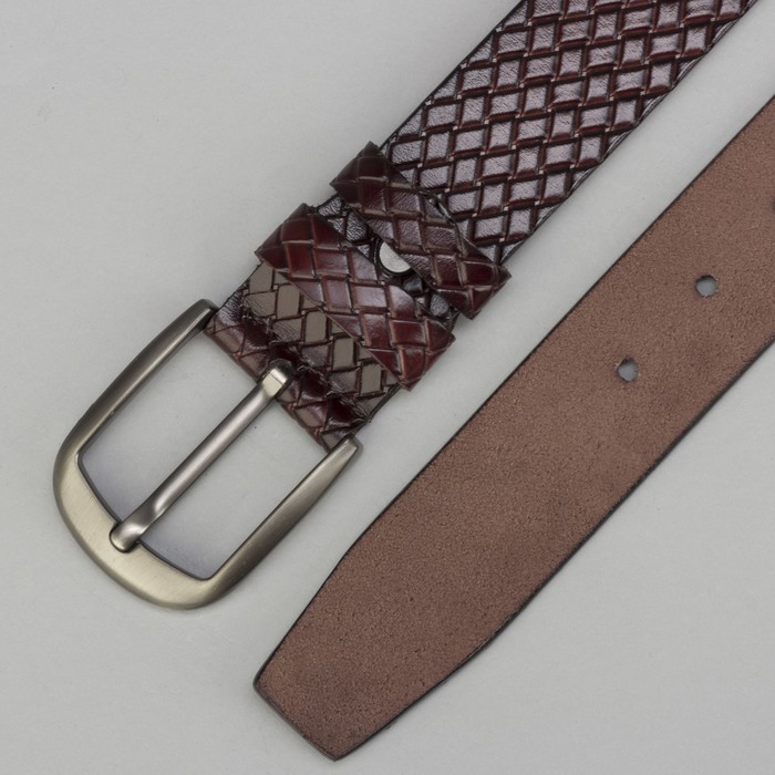 Ремень мужской, плетёнка, пряжка тёмный металл, цвет кофе