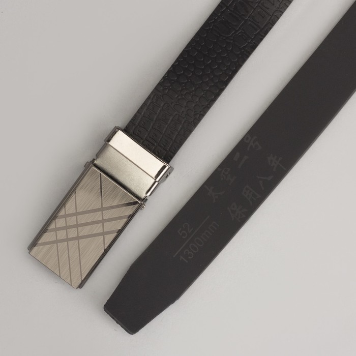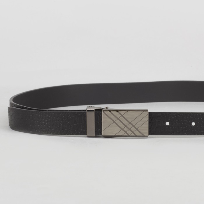 Ремень мужской, под рептилию, пряжка зажим металл, ширина - 2,2 см, цвет чёрный