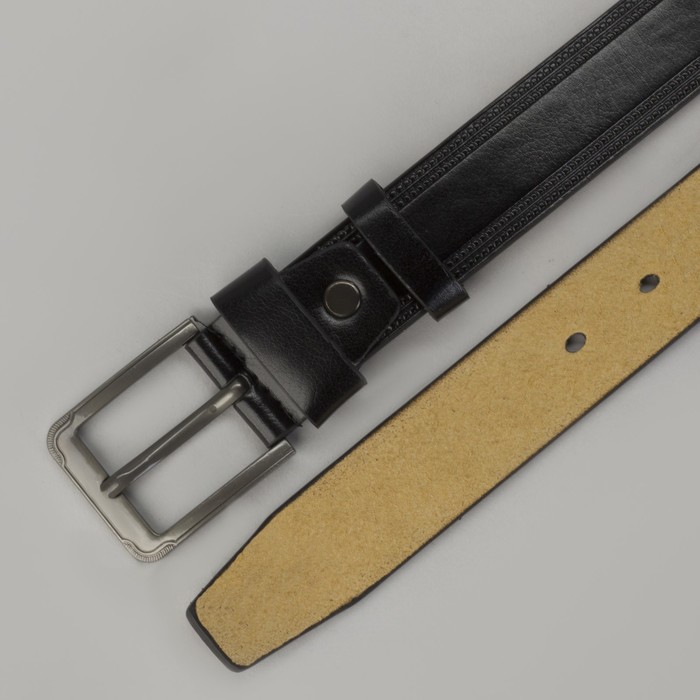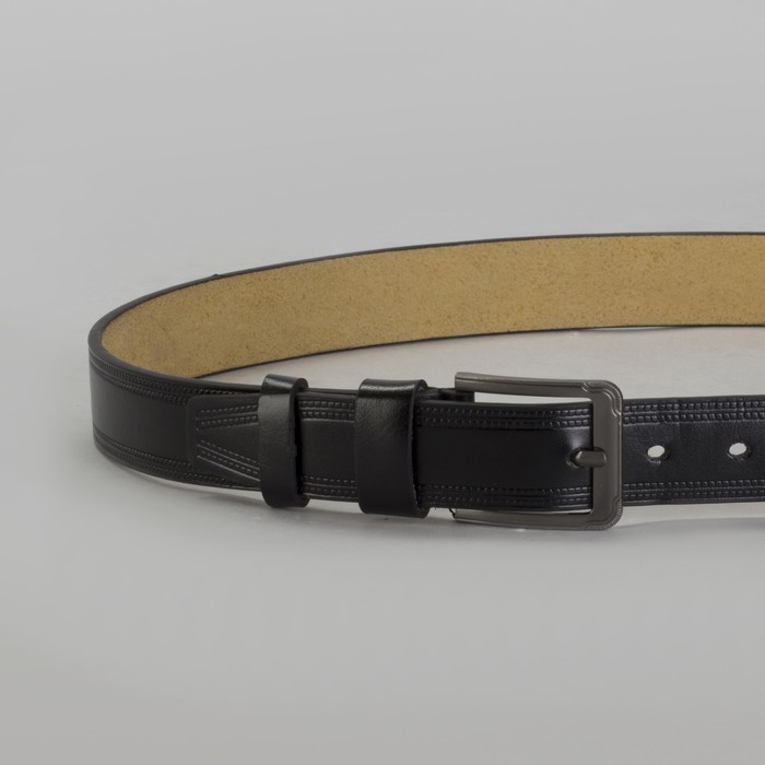 Ремень мужской, пряжка матовый тёмный металл, ширина - 3,5 см, цвет чёрный