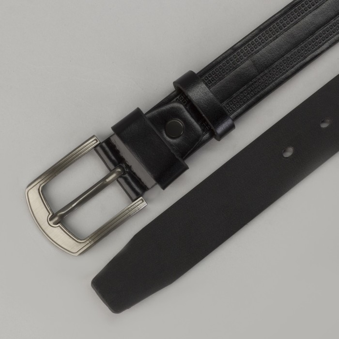 Ремень мужской, пряжка матовый тёмный металл, ширина - 3,5 см, цвет чёрный