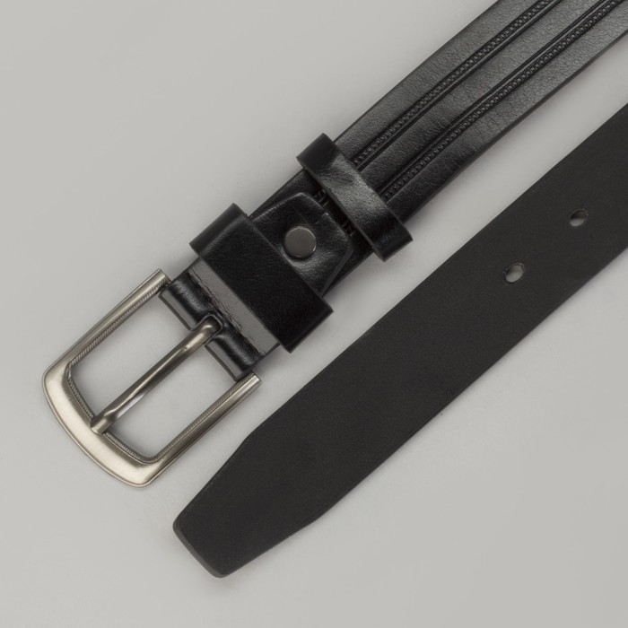 Ремень мужской, пряжка матовый тёмный металл, ширина - 3,5 см, цвет чёрный