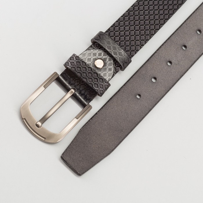 Ремень мужской, пряжка тёмный металл, ширина - 4 см, цвет чёрный — выбор стильных людей. Вещь изготовлена из качественных и безопасных материалов, а над дизайном работала команда настоящих профессионалов.