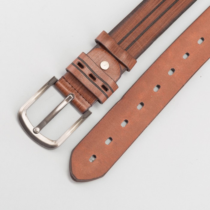 Ремень мужской, пряжка тёмный металл, ширина - 4 см, цвет коричневый