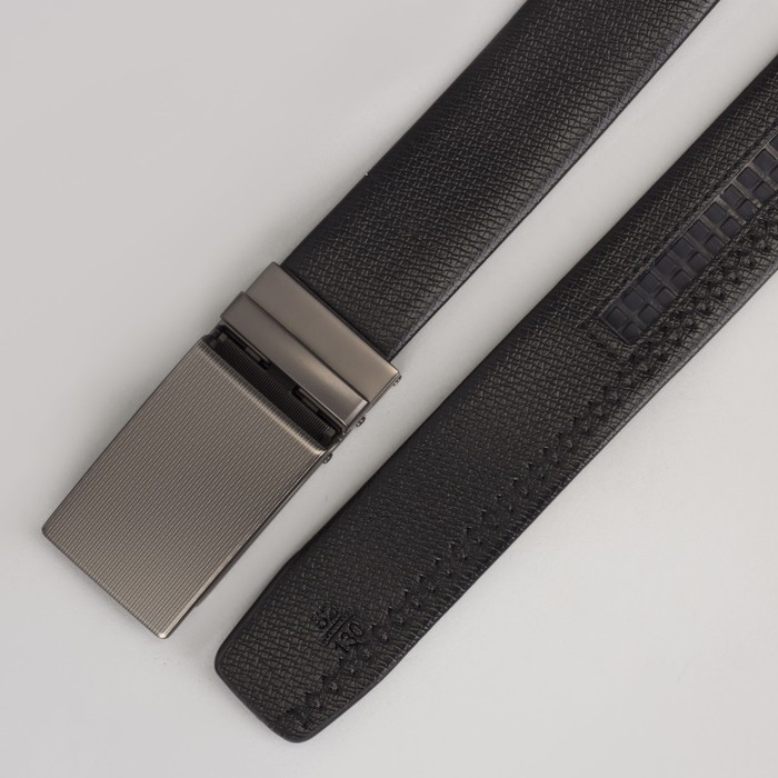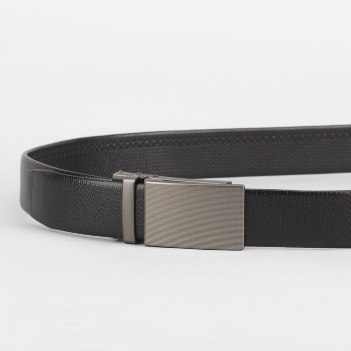 Ремень мужской, пряжка зажим матовый металл, ширина - 3,5 см, цвет чёрный