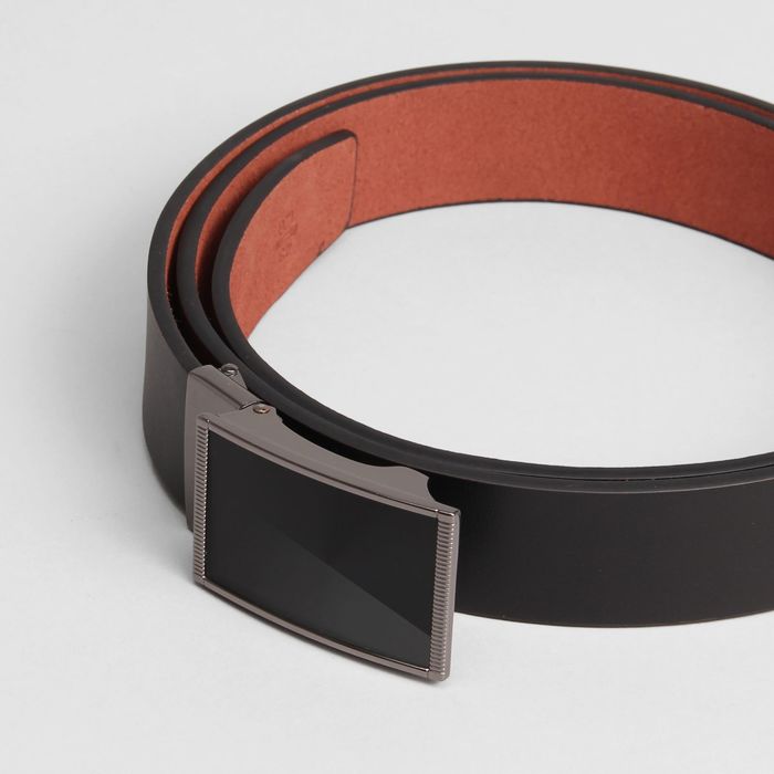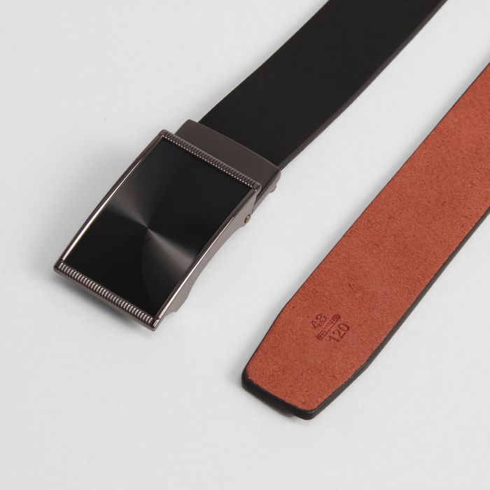 Ремень мужской, пряжка-зажим металл, гладкий, ширина - 3,5 см, цвет чёрный — выбор стильных людей. Вещь изготовлена из качественных и безопасных материалов, а над дизайном работала команда настоящих профессионалов.