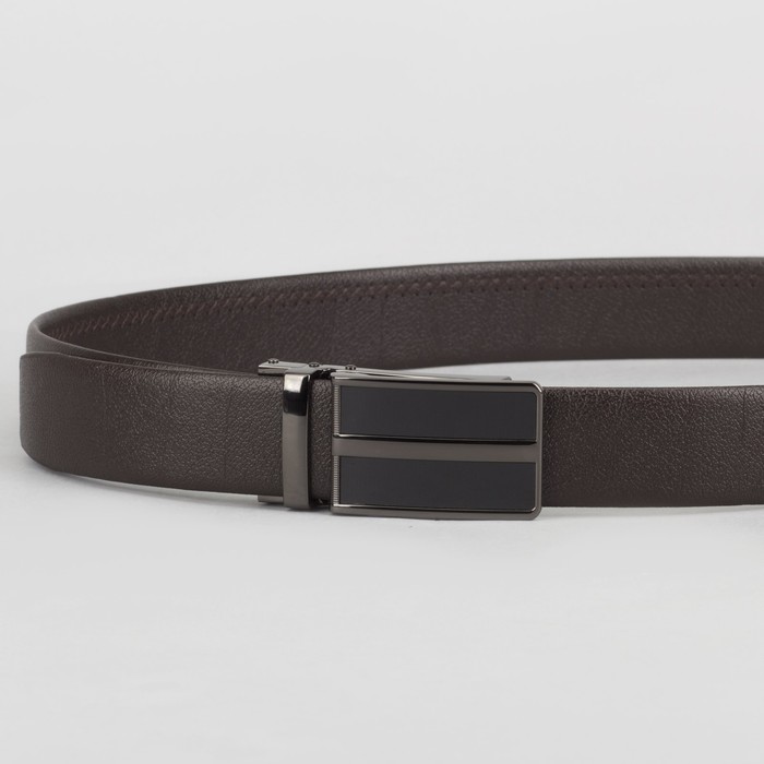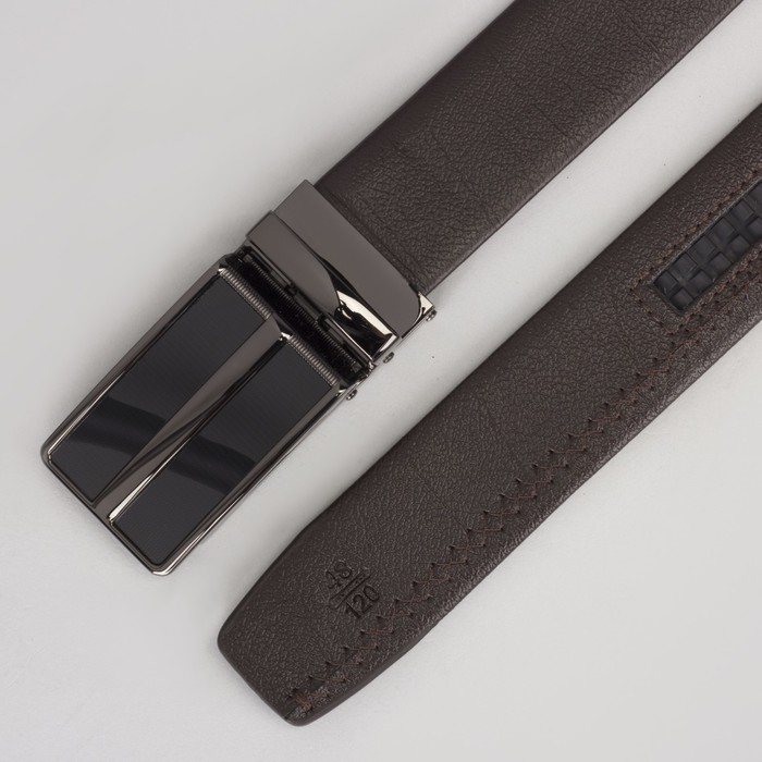 Ремень мужской, пряжка зажим тёмный металл, ширина - 3,5 см, цвет кофе