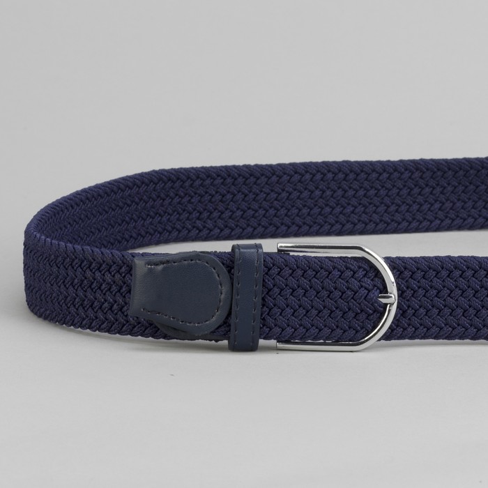 Ремень мужской, резинка плетёнка, пряжка тёмный металл, цвет синий