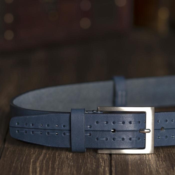 Ремень мужской, ширина 3,4 см, с рисунком, винт, пряжка металл, цвет синий — выбор стильных людей. Вещь изготовлена из качественных и безопасных материалов, а над дизайном работала команда настоящих профессионалов.