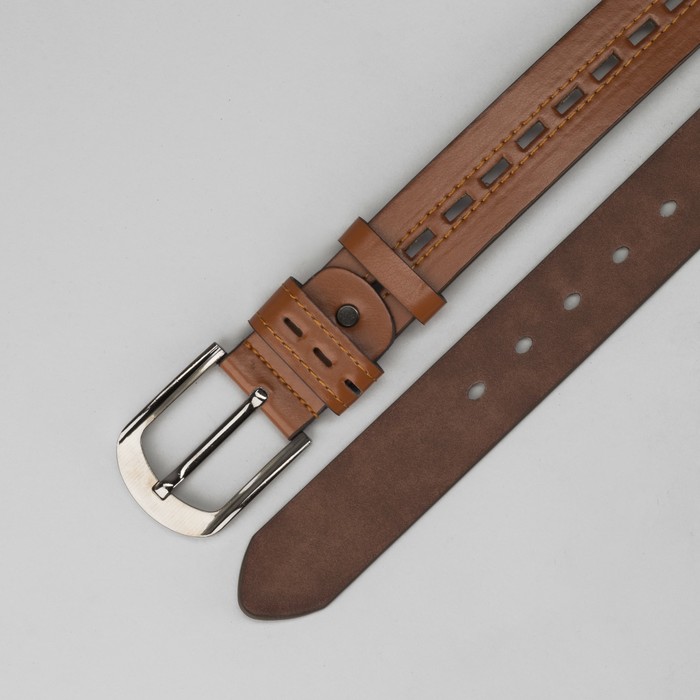 Ремень мужской, ширина - 4см, вырубка, пряжка под металл, коричневый