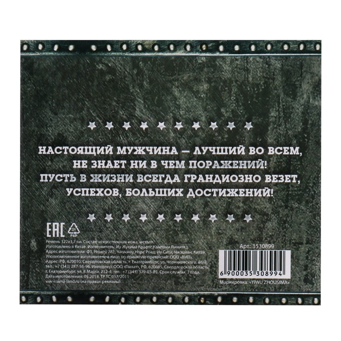 Ремень мужской в подарочной коробке "23 февраля. Настоящий мужчина"