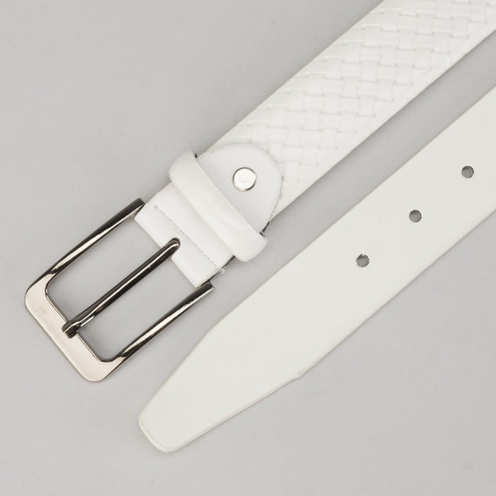 Ремень мужской Великан, пряжка под тёмный металл, ширина - 3,5 см, цвет белый