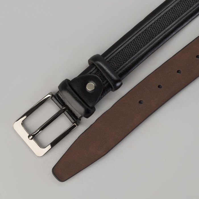 Ремень мужской Великан, пряжка тёмный металл, ширина - 3,5 см, цвет чёрный