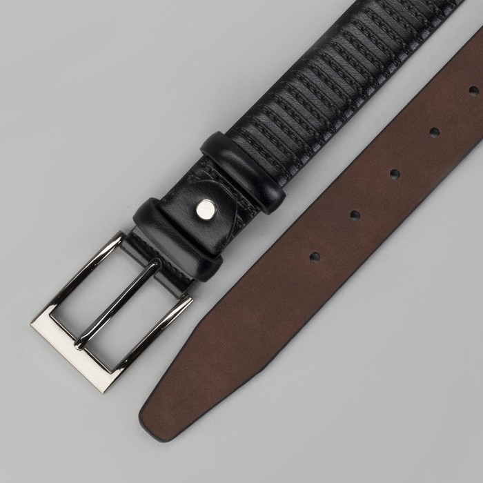 Ремень мужской Великан, пряжка тёмный металл, ширина - 3,5 см, цвет чёрный