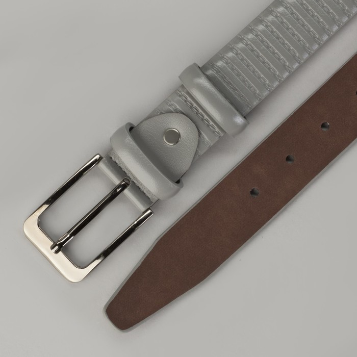 Ремень мужской Великан, пряжка тёмный металл, ширина - 3,5 см, цвет серый