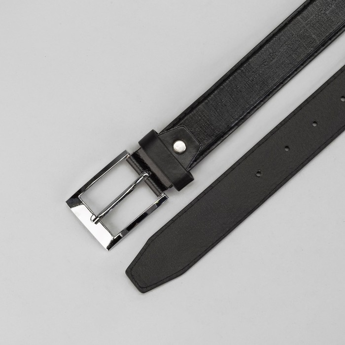 Ремень мужской, винт и пряжка под серебро, 2 строчки, ширина - 3,5см, чёрный