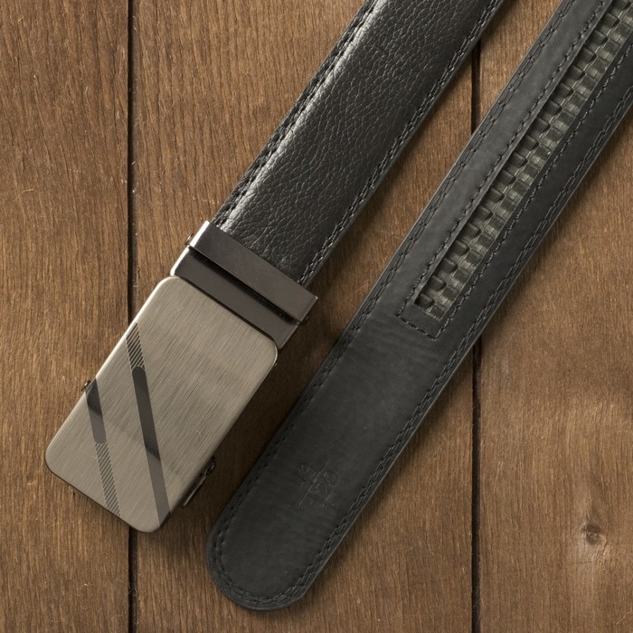 Ремень мужской, винт, пряжка автомат под тёмный металл, ширина - 3,5 см, цвет чёрный гладкий