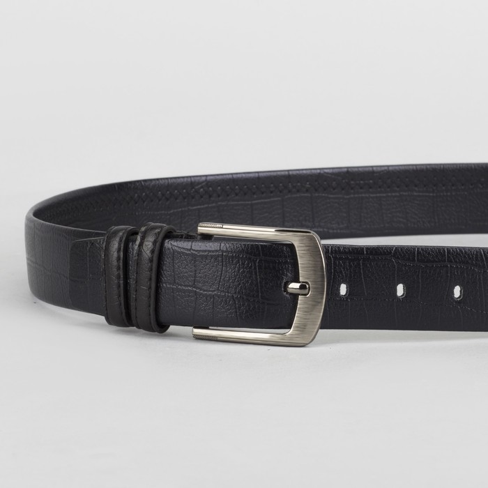 Ремень мужской, винт, пряжка матовый металл, ширина - 3,5 см, цвет чёрный