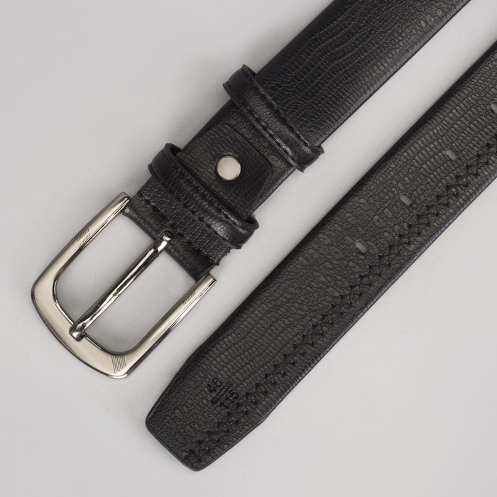 Ремень мужской, винт, пряжка матовый металл, ширина - 3,5 см, цвет чёрный