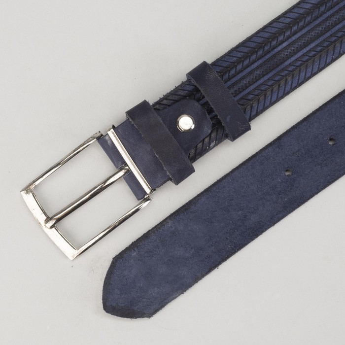 Ремень мужской, винт, пряжка под металл, ширина - 3,5см, синий — выбор стильных людей. Вещь изготовлена из качественных и безопасных материалов, а над дизайном работала команда настоящих профессионалов.